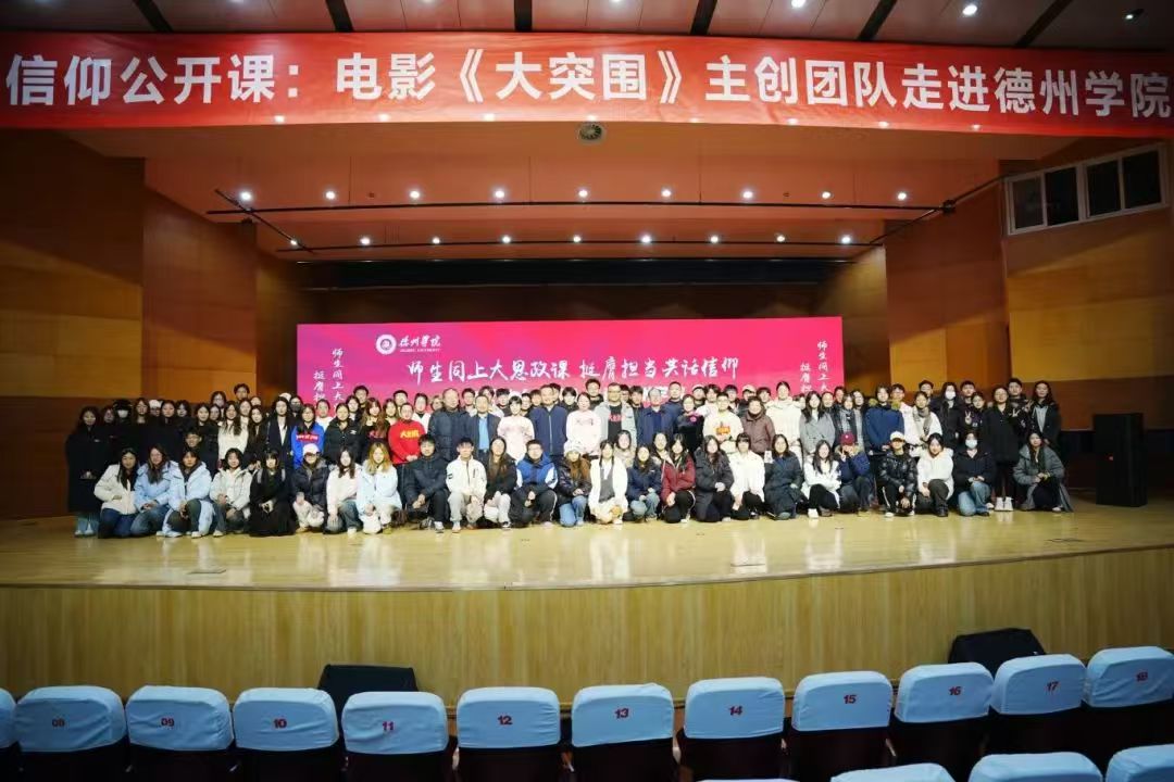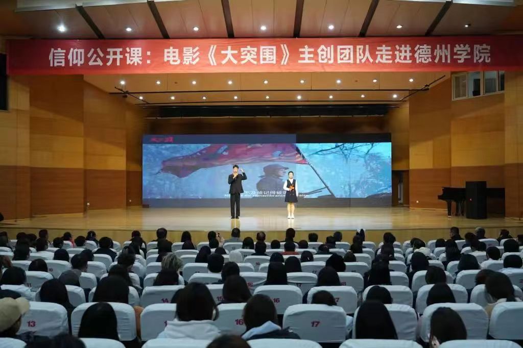 为激发现代青年大学生的爱国情怀,铭记历史,珍惜当下的和平生活,传承弘扬红色沂蒙精神。12月9日德州学院于南校音乐厅组织开展了信仰公开课:“电影《大突围》走进德院”活动。电影《大突围》出品人、总制片人陶姝君,导演杨真、演员廉知颖、副导演阿坤出席,化学化工学院“薪火沂蒙志愿宣讲团”积极参入到活动当中,深入学习红色沂蒙精神的内涵。