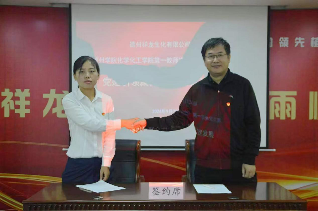 在新中国成立75周年之际,为深入学习贯彻党的二十届三中全会精神,促进人才培养与地方产业融合发展,探索党建引领下的产教融合育人新路径,推动校企双方在党建及合作领域深度互融、资源共享。9月25日上午,化学化工学院赴德州祥龙生化有限公司开展校企党建联建活动。学院党政负责人、师生党员、学生代表30余人参加。