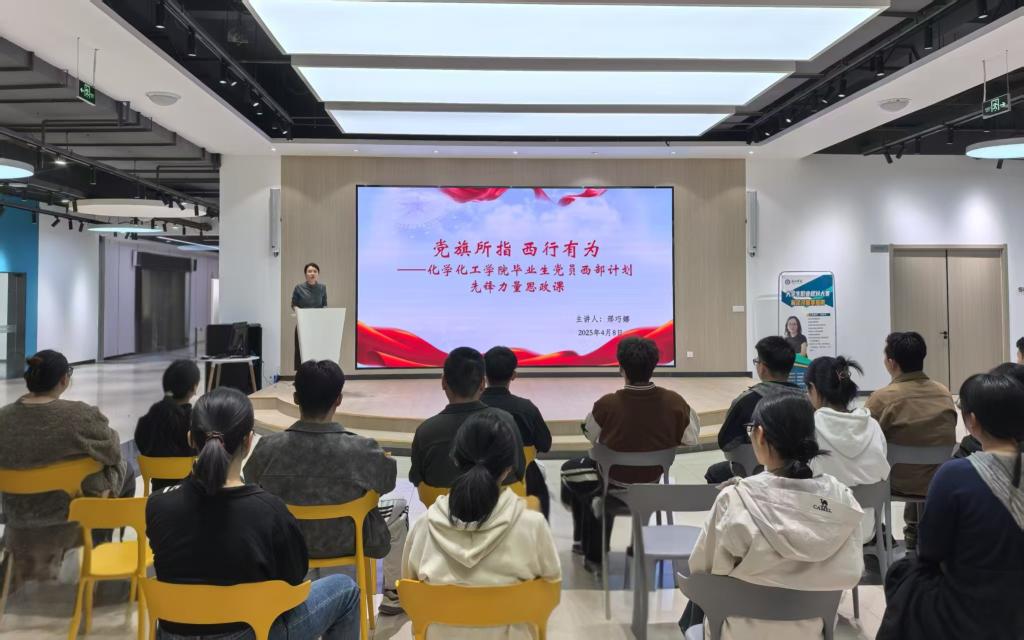 为积极响应国家关于推动高校毕业生投身基层就业的号召,强化青年学子的家国情怀与社会责任感,激励毕业生党员勇担时代重任,4月8日,化学化工学院于就业创业赋能中心举办“党旗所指,西行有为”西部计划先锋力量专题思政课。此次活动由学院党委书记授课。