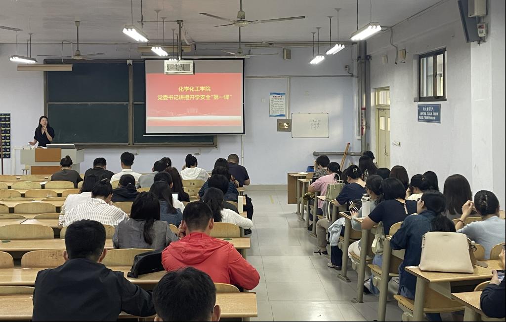 为筑牢校园安全防线,强化教师队伍建设,9月30日,化学化工学院于求实楼101教室举行秋季学期开学“安全第一课”。学院党委书记主讲,全体教师及辅导员参加。