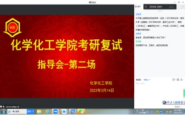 近日,2023年考研国家线已经公布,在考研上线同学准备复试或调剂的关键时期,为使考生获取精准有效的复试面试指导,化学化工学院于3月14日采取线上腾讯会议方式召开了考研复试指导会议(第二场)。会议由学院分管教学副院长王新芳教授主持,邀请了4位往届考取研究生的毕业生分享复试及调剂经验,院长李洪亮教授做了考研复试指导报告,化学化工学院2023届考研上线考生参加了会议。