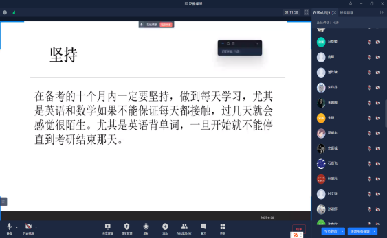 此次暑期考研经验分享会的举办,为2026届考研同学提供了明确的指导,坚定了考研的信心和决心,相信同学们带着老师的祝福、带着学长学姐的指导和鼓励,一定会度过一个充实、快乐、收获满满的暑期。