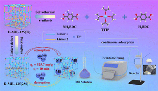 作为最常用的阳离子染料之一,亚甲基蓝(Methylene blue,MB)广泛应用于印染和纺织工业领域。然而,MB生物可降解性差,人体接触水体中高浓度MB可产生头痛、恶心等不良反应。因此,研究和开发高效脱除印染废水MB的吸附剂具有重要意义和实际应用价值。金属-有机框架(MOF)材料凭借其结构的可调节性,在先进功能材料的开发中备受关注,研究团队结合已有经验提出了一种构建具有多级孔和氧空位协同作用的Ti-MOF吸附剂的策略,该吸附剂实现了水体中MB的快速高效连续去除,其吸附速率和去除效率在同类材料中达到国际领先水平,实现了突破。这一创新策略为染料吸附材料的设计提供了有效的借鉴,有望在环境治理方面发挥重要作用。该工作得到国家自然科学基金、山东省自然科学基金、山东省青创科技计划、德州学院青创科技计划等经费资助。
