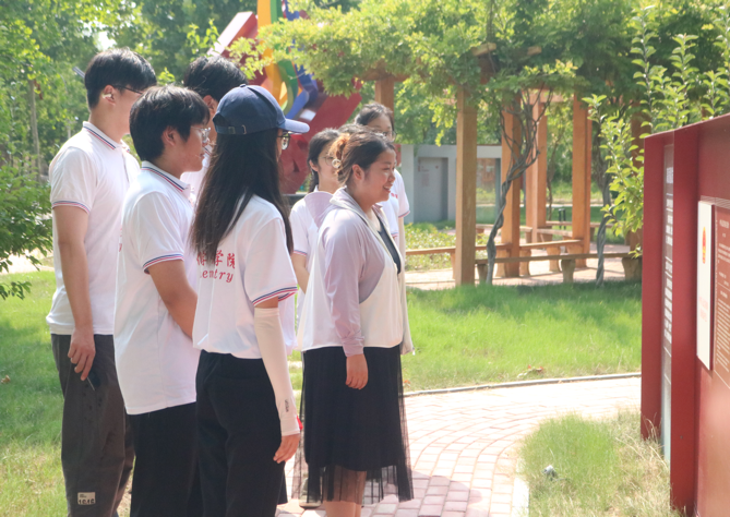 随后,实践队成员来到位山闸管所,由工作人员带领参观黄河文化展示园。行走在园区内,队员们深入了解位山引黄闸的建闸志、建设背景以及发展历史,通过查阅黄河流域分布图,学习黄河延绵、灌区纵横、滋润沃野、“惠泽聊城”的重大意义。