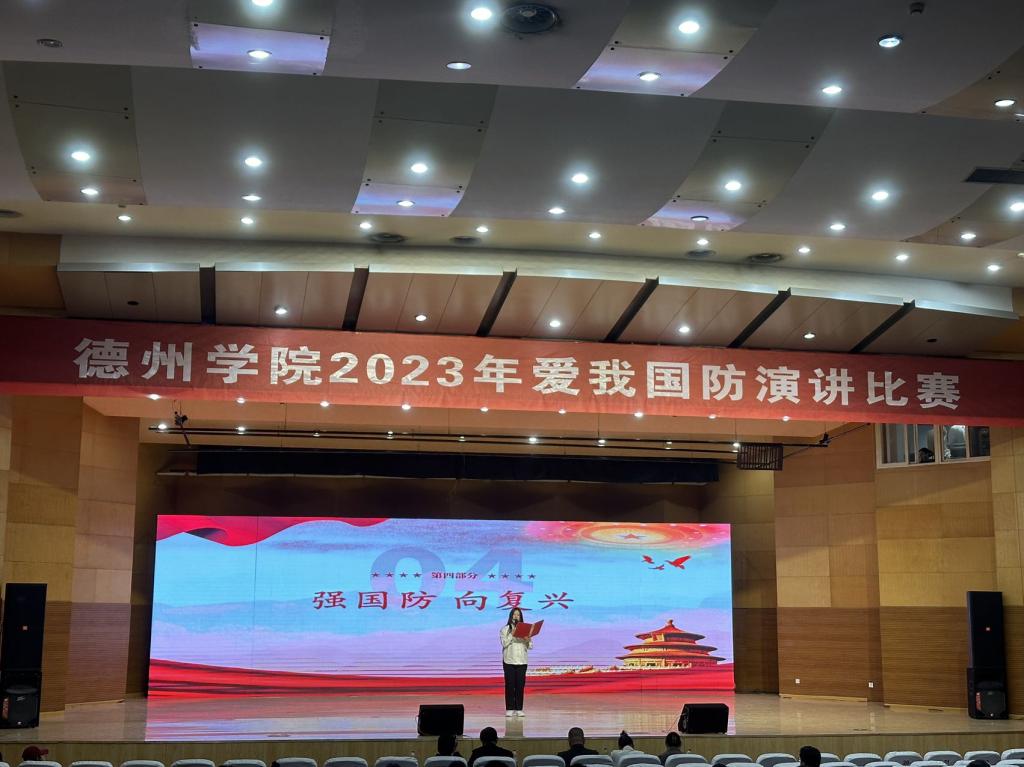 为持续深化国防教育工作,进一步激发大学生关心国防和参军报国热情,营造爱我国防、强我国防的浓厚氛围,10月24日下午,化学化工学院参加德州学院2023年“爱我国防”演讲比赛并获得二等奖。
