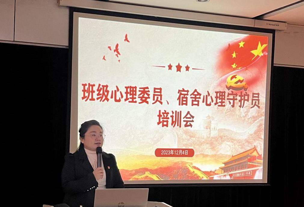 会上,主持人宣读了优秀宿舍名单,表彰了优秀宿舍代表。学工办主任对获奖宿舍给予祝贺,鼓励同学们珍惜荣誉,努力学习,将来做一名对母校和社会有用之才。会后,学工办主任从角色定位、心理危机预防、工作方式方法等方面对心理委员和心理守护员做了培训,用生动的语言结合典型案例向大家分享了“心理委员、心理守护员要做什么、怎么做及如何去发现问题和解决问题”等心理健康工作关键点,指导学生进行现场情景演示。学生们纷纷表示体验感好,获益匪浅。