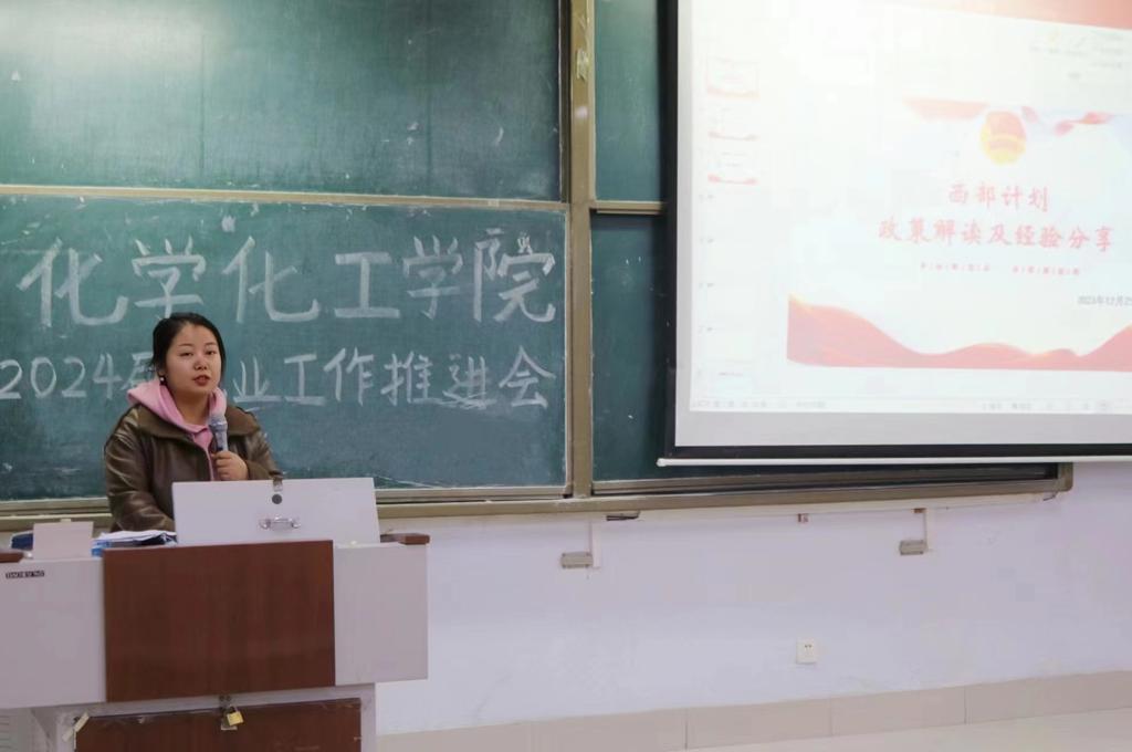 为做好2024届西部计划宣传动员工作,引领更多青年加入西部计划志愿者队伍,12月25日,化学化工学院于求实楼315开展“到西部去,绽放青春之花”西部计划宣讲会。学院团委书记主讲,全体2024届毕业生参加。