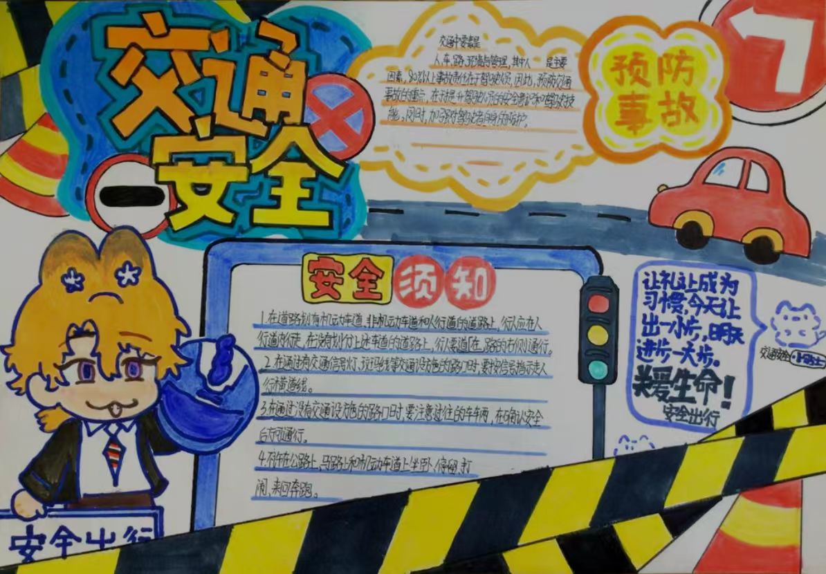 为进一步强化学生交通安全意识,培养文明出行习惯,12月2日至12月5日,化学化工学院开展“手绘安全线 平安伴我行”交通安全主题手抄报创作活动。