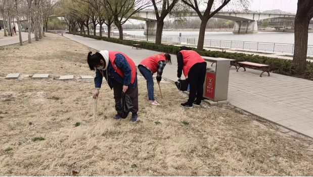 活动开展前,工会老师进行了环境卫生区的分工,之后大家进入负责区开展清洁服务工作。二十余名师生志愿者积极发扬服务人民、助人为乐的雷锋精神,在工会老师划分的负责区域拿着垃圾钳、塑料袋等卫生工具,针对岔河两岸护堤草坪上的塑料袋、烟头、纸屑等杂物进行细致地清理。经过师生一上午的努力,岔河两岸面貌焕然一新,干净整洁的河岸公园在万物复苏的季节里显得更加生机盎然。活动结束后,大家在河边公园进行了合影留念。