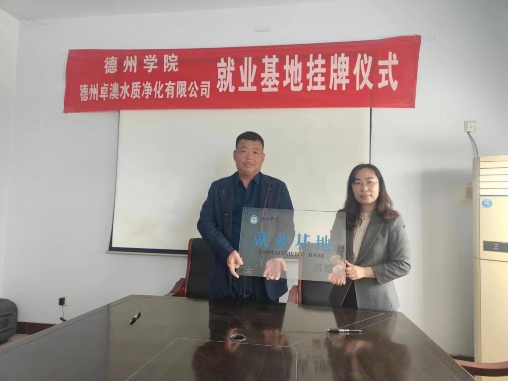仪式上,公司总经理详细介绍了公司发展历程,工业废水、生活废水的处理流程及公司发展战略,希望能够加强校企合作,织就“共生共赢”网。化学化工学院党委书记就学院的师资力量、人才培养模式、学生就业工作、科研情况做了详细介绍。双方一致认为,要将学校基础研究的优势与企业科技创新活力相结合,在高层次人才共享、联合研发平台建设以及学生就业等方面开展深度合作,共同服务地方经济社会发展。随后,双方签订《德州学院就业基地共建协议书》《实习实训基地协议书》,并进行授牌。