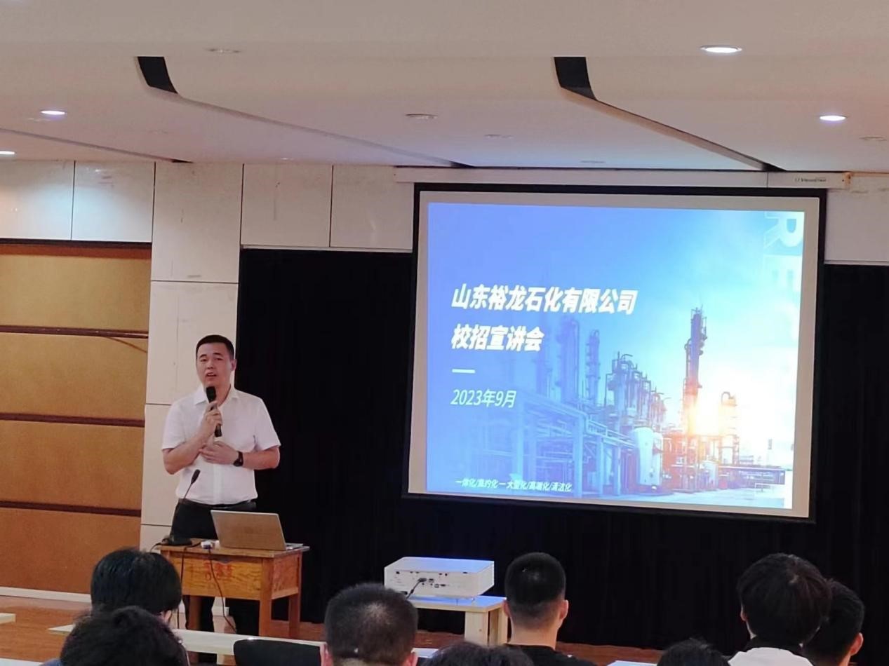为拓宽学生就业渠道,搭建供需平台,推动2024届毕业生就业工作,9月19日,化学化工学院于求实楼215举办山东裕龙石化有限公司招聘宣讲会,2024届毕业生参加。