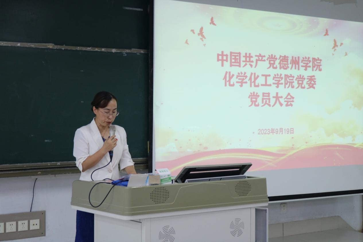 中国共产党德州学院第四次党员代表大会将于9月底召开,根据学校党委统一部署,9月19日,化学化工学院于求实楼0310室召开全体党员大会,选举产生出席学校党代会的代表。学院党委书记主持,学院全体正式党员参加。