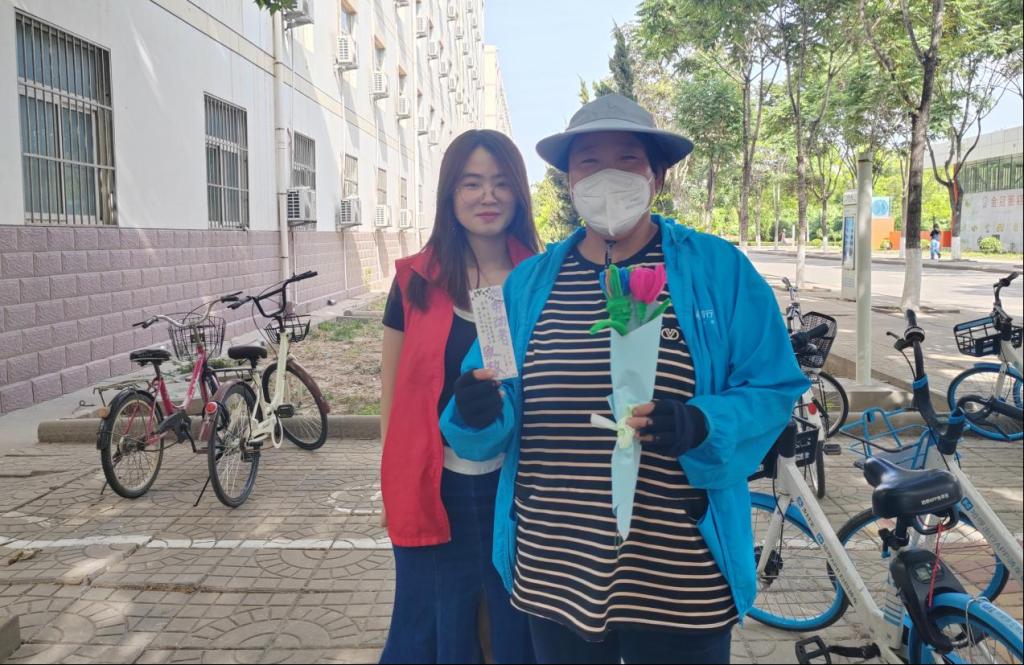 活动中,负责人首先为大家讲解了基础制作知识,为大家发放制作材料。学生们表现出浓厚的兴趣、积极参与,按照步骤一次次绑“花杆”、缝合“花骨朵”……原材料在大家手中变成了一朵朵各具特色的漂亮花束,学生也将对劳动者的美好祝福写到贺卡上。制作完成后,学生将一束束溢满心意的花束献给在校园中默默付出的劳动者,并向劳动者表达感谢,让他们充分感受到温暖与关爱。劳动者们纷纷表达感谢,并表示第一次收到这么漂亮有创意的花。