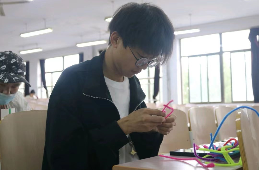 为深入开展学习贯彻习近平新时代中国特色社会主义思想主题教育,弘扬劳模精神,激励青年学生以劳动为荣,尊重劳动成果,营造良好氛围,5月25日,化学化工学院于求实楼401教室开展于“巧手自制手工花,送最光荣劳动者”活动。2022级部分学生参加。