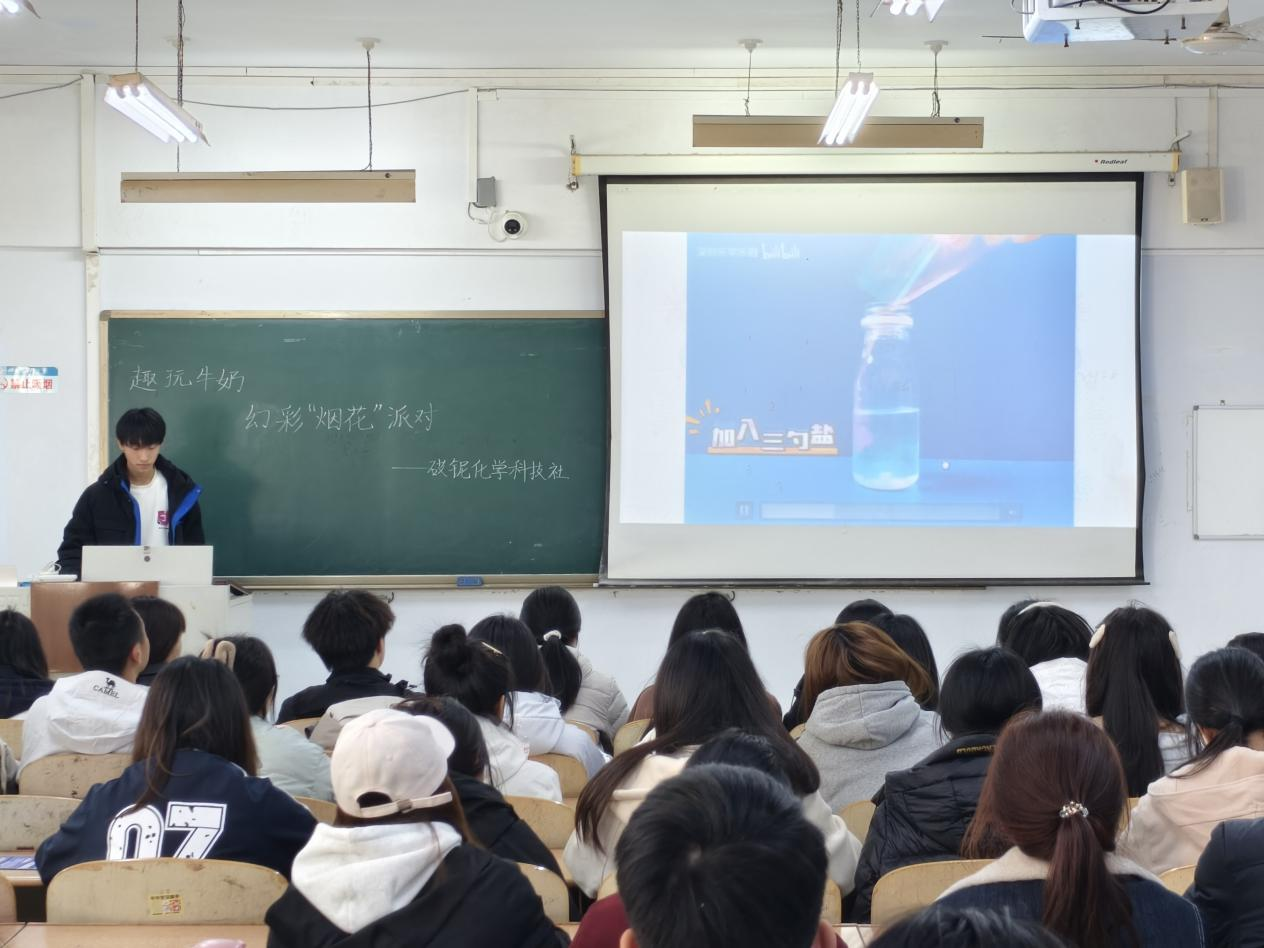 为激发学生对化学知识的探索兴趣,培养其观察和思考生活中化学现象的能力,3月12日,化学化工学院于,求实楼0207教室举办“趣玩牛奶,幻彩‘烟花’派对”活动。各学院共60余人参加。