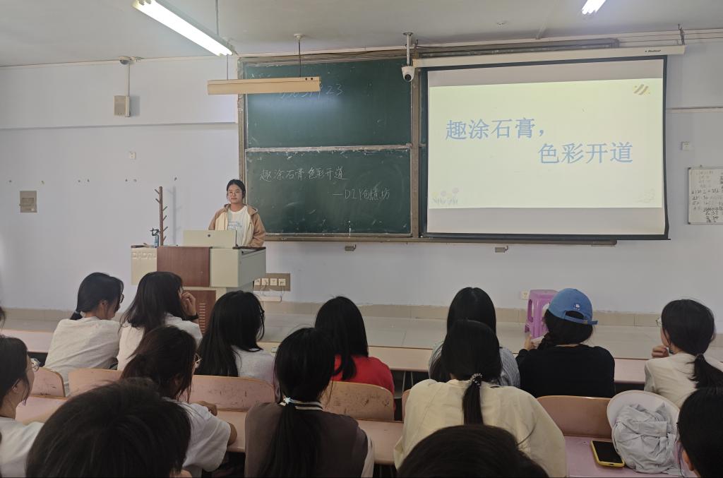 活动伊始,活动负责人深入浅出地讲解了色彩搭配的基本原理与石膏造型的立体表现手法。通过投影展示的特色石膏作品,激发了成员们的创作灵感,引导他们开始构思自己的涂鸦创意。随后,成员们纷纷拿起画笔,将心中的想象与情感倾注于石膏之上。有人以细腻的渐变色调勾勒出梦幻般的石膏作品,有人则大胆运用波点元素,为卡通形象赋予了潮流与个性的气息,展现了青年学子的无限创意与活力。在创作的过程中,成员们不仅享受到了艺术带来的乐趣,更在色彩与线条的交织中找到了释放压力、表达自我的独特方式。创作完成后,成员们分组上台展示自己的作品,并深情地阐释了设计背后的灵感与寓意。随后,大家围绕“色彩疗愈”“艺术赋能生活”等话题展开了热烈的讨论,分享了各自在大学生活中的压力与挑战,以及如何通过艺术创作来寻找心灵的慰藉与力量。这场心灵的对话,不仅加深了成员之间的了解与友谊,更为他们未来的学习生活注入了满满的正能量。