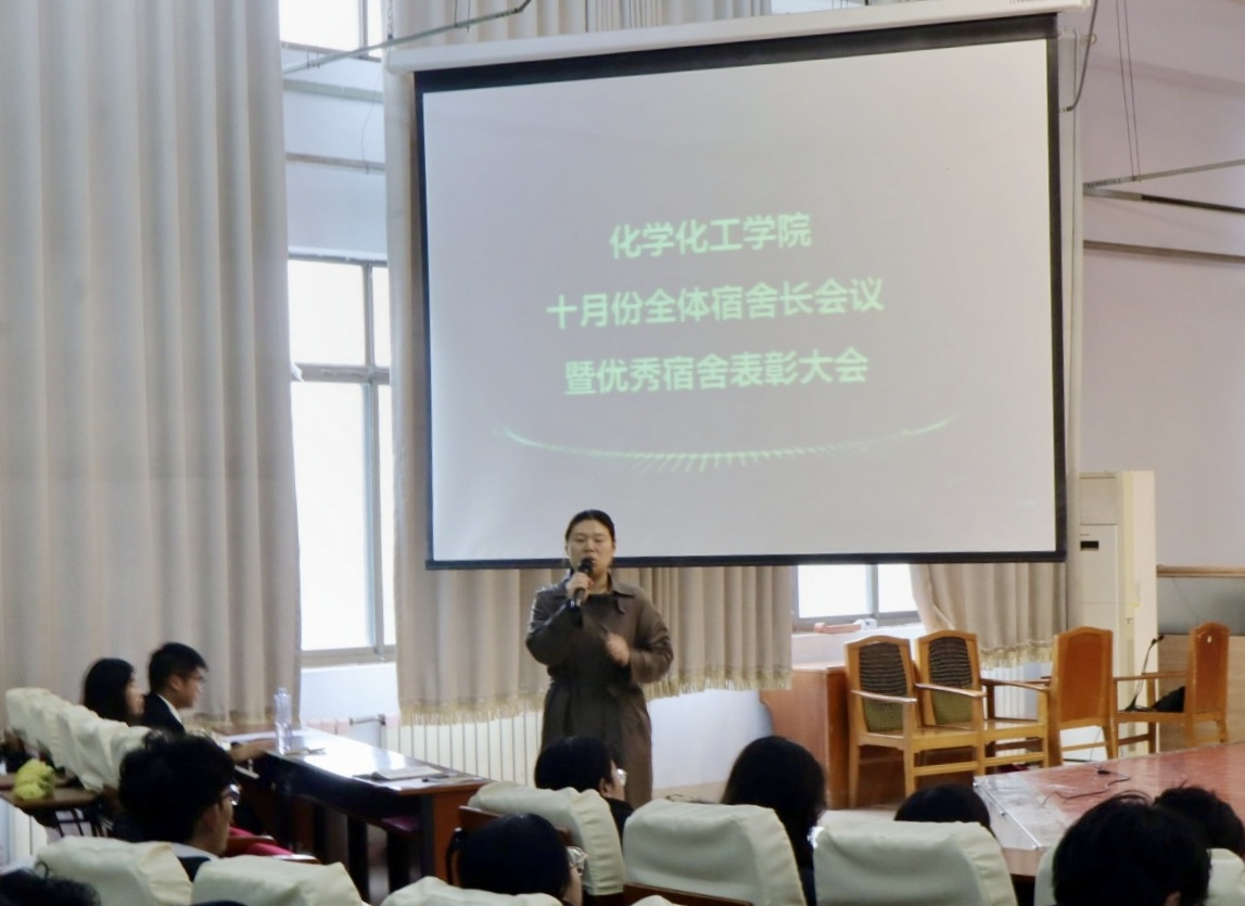 为深入落实“一站式”学生社区建设,引导学生营造整洁、文明、和谐的宿舍环境,10月28日,化学化工学院于求实楼4009举办十月份优秀宿舍表彰大会。学院公寓负责老师、宿管会干事以及各宿舍代表等120余人出席了此次大会。