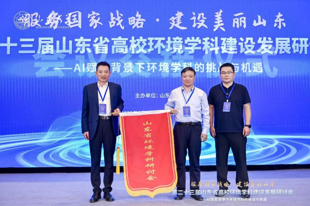 在开幕会上,正式宣布我校获得第二十四届会议承办权。山东大学青岛校区党工委副书记宋作标代表山东大学,李甲亮代表学校完成会旗交接。他全面介绍了学校学科建设成果,并诚挚邀请各参会代表于2026年相聚德州,共同擘画环境学科发展新蓝图。