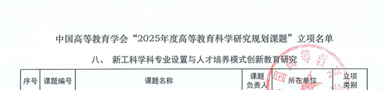 中国高等教育学会设立的“高等教育科学研究规划课题”是我国高等教育研究领域的权威科研项目,以其学术前瞻性和实践价值著称。其中重点项目和少数重大项目聚焦国家重大战略需求,代表了当前高等教育研究的较高水平,具有重要的学术影响力和社会价值。此次立项的成功,标志着我院在新工科建设以及产教融合协同育人方面迈出了坚实的步伐,充分彰显了我院教师在工程教育改革领域的研究能力与实践创新水平。