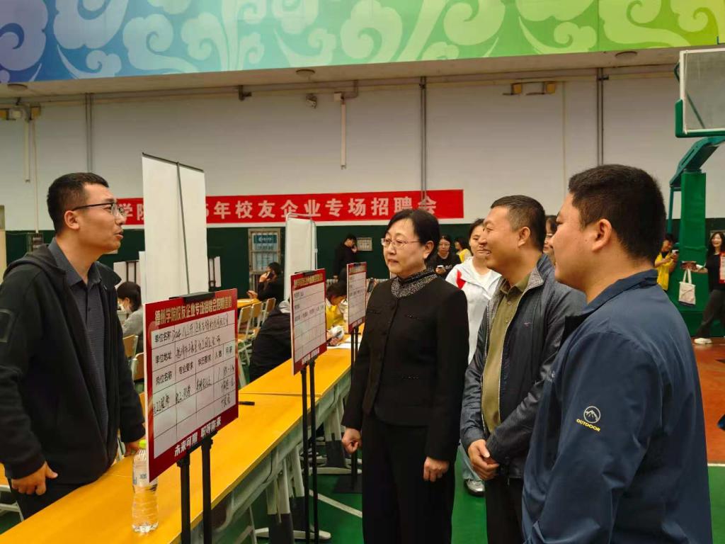 本次招聘会吸引了山东恒东生物科技有限公司、信诺立兴(黄骅市)集团股份有限公司等100余家单位参会,来自化工、材料等多个领域的校友企业带来丰富的岗位资源,涵盖研发、生产、技术、管理等多个类别,满足了不同专业学生的就业需求。毕业生手持简历,主动了朱训焜、侯佳慧解企业发展历程、岗位要求、薪资待遇、晋升空间等信息,积极与企业招聘人员沟通交流。校友企业向毕业生介绍企业概况与招聘需求,耐心解答同学们的疑问。学院院长、党委副书记、毕业班辅导员与校友企业代表深入交流,了解行业人才需求和企业发展趋势,共商校企协同育人新路径。