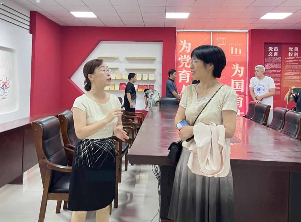 一行人参观化学化工学院第一教师党支部党员活动室与“初心展厅”,对全国党建工作样板支部建设情况及深入开展学习贯彻习近平新时代中国特色社会主义思想主题教育工作开展情况进行了座谈交流。