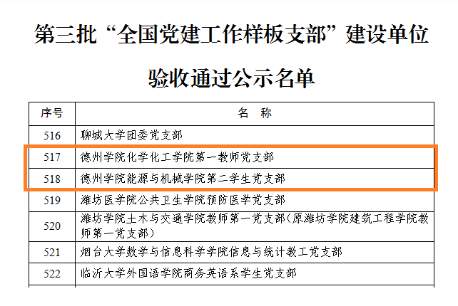 近日,教育部思想政治工作司公示了关于第三批新时代高校党建示范创建和质量创优工作验收结果,化学化工学院第一教师党支部经对标自查总结、省委教育工委把关审核、教育部思想政治工作司审查,顺利通过验收。