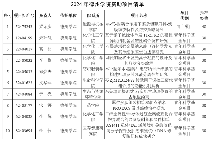 近日,国家自然科学基金委发布了《关于2024年国家自然科学基金集中接收申请项目评审结果的通告》,我校共有10项基金项目获得立项资助,化学化工学院第一教师党支部青年博士党员李辉获批1项国家自然科学基金项目,获批直接经费30万元。