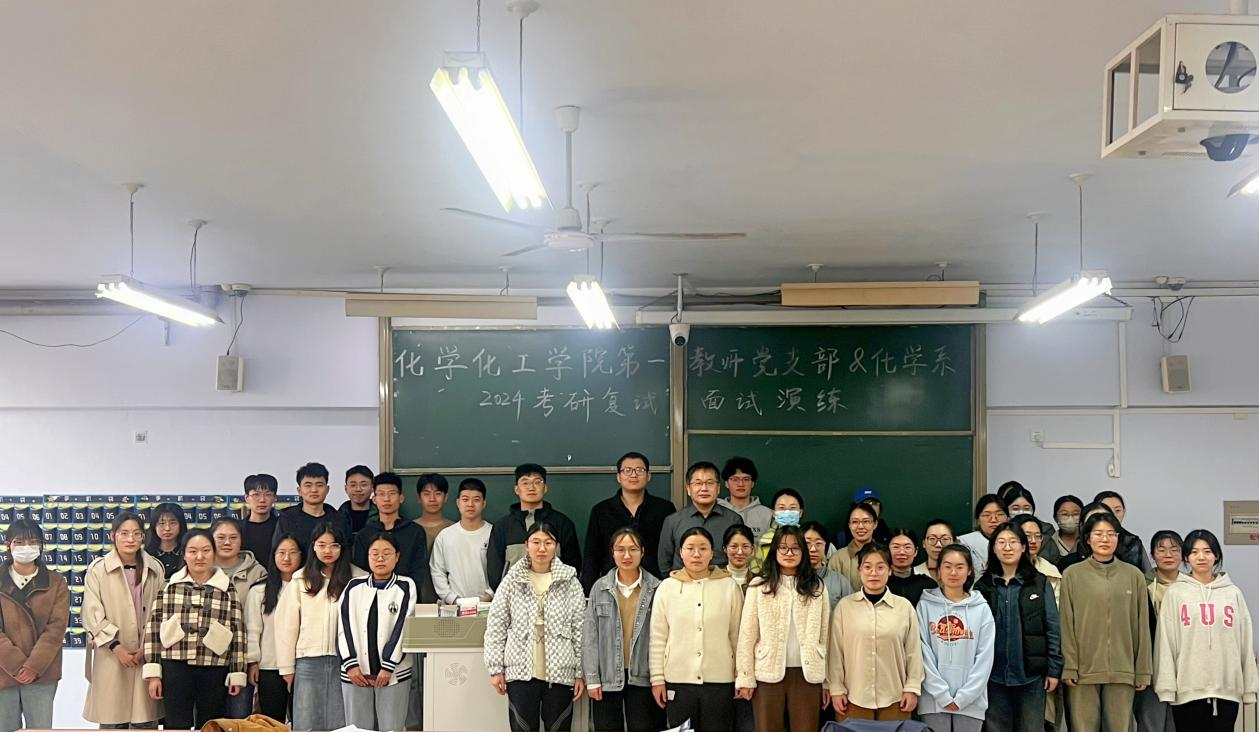 2024年化学化工学院化学专业考研上线率再创佳绩,达到51%,为了提高复试成功率,化学化工学院第一教师党支部(第三批全国党建工作样板支部培育创建单位)和贾春晓书记工作室(第二批全省高校“双带头人”教师党支部书记工作室培育创建单位),提前筹划、精心组织,从2月28日考研分数公布至今,组织了一系列活动助力学生考研复试。
