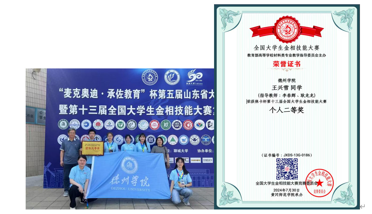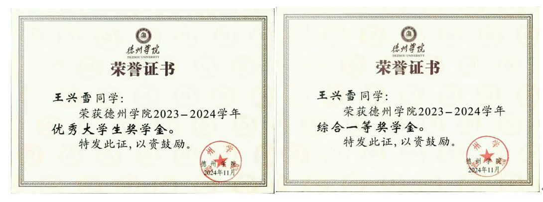 王兴雪,中共预备党员,化学化工学院2022级环境工程专业学生。现任班级组织委员兼心理委员,怀瑾握瑜、品学兼优,手握1次国家奖学金、2次国家励志奖学金,3次斩获德州学院优秀大学生奖学金、综合一等奖学金,还获评德州学院优秀共青团员、三好学生等多项荣誉。竞赛场上锋芒毕露,拿下第十三届全国大学生徕卡杯金相技能大赛国家个人二等奖、第五届山东省大学生金相技能大赛个人二等奖及团体三等奖;科研路上步履坚实,参与编写2篇中文核心期刊论文、1篇SCI三区论文,用实力诠释青年担当。